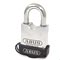 83/55 Padlock: Nickel Plated Body with Through Hardened Steel Shackle: ABUS Protection Level: 8 Plastic cover is great for preventing grit and dirt getting into the keyhole. Perfect if the padlock is to be used on a car park gate. The 83/55 is the smallest of the ‘Rock’ classified ABUS padlocks. This is a heavy duty high security padlock designed for high risk areas. The hardened steel body and shackle are tough against attack from bolt cutters and saws. The open shackle means you have greater clearance underneath the shackle to fit the padlock onto the hasp and staple/ length of chain. The 83/55 is available keyed alike or masterkeyed to any other padlock in the ABUS 83 series. 6 pin tumbler maufactured from rustfree components Padlock Features: CEN Grade 4 Through hardened steel body and shackle Drill Resistant Bolt Cutter Resistant Ball bearing locking (greater protection against pulling and twisting) Saw resistant Special alloy shackle with NanoProtect for ultimate corrosion resistance. Available Keyed to Differ, Keyed Alike & Masterkeyed !!<