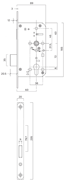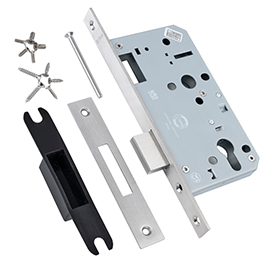 The Briton 5710 is a DIN standard euro profile deadlock for use on doors without lever furniture that require locking. It has a 60mm backset with 72mm centres and one turn of a cylinder will throw the bolt 20mm.
