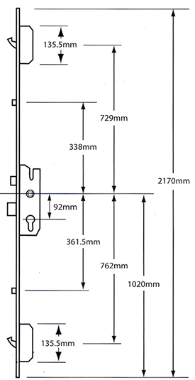 2 Hook and 2 Roller - Split Spindle Features 16mm Faceplate Euro Profile Lock Case Latch & Deadbolt Split Spindle Backset - 35mm Centres - 92mm Operation: Locking: Lift Lever to engage locking mechanisms and then one full turn of the cylinder to lock. Unlocking: One full turn of the cylinder and then push down the handles to release the locking mechanisms Please note these Multipoint locks do not come with any strike plates or fixing screws. The strike plates can be ordered but please contact us if required.