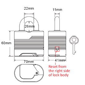A new weatherproof & JR cover resettable combination padlock combined with number dials device for lock opening to provide confidential security. Hardened steel lock case against damage to surface and assembled with full coverage jacket prevents padlock body from collision to protect its surface, as well as provides anti-static and waterproof abilities. The shackle with quality plating provides and legible brass number wheels with satin nickel plated and black painting to provide anti-oxidation feature. It is easy to reset your own combination with change pin at any time and place and convenience to carry on every user for any demand of security for your belongings or storage goods in somewhere even if the moveable cabinet, also suitable for outdoor farmhouse or storehouse. - Hardened Steel lock case with water proof cover - Patented anti-dust(JR) cover; Anti-corrosion Parts inside - Super tough alloy steel shackle - Easy to reset your combination number at any time - 4 dials with 10,000 possible combinations - Easy to reset with your combination number at any time - Keyless convenience