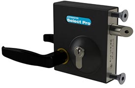 Weather resistant and salt spray tested to marine grade, the Gatemaster Bolt On Latch Deadlock is designed for durability. With 2 handles styles and 2 sizes to choose from, plus with adjustable length stainless steel latchbolt, these non-handed latch deadlocks are versatile and easy to use. Please ensure you choose the correct product to suit the gate frame size. Features Designed to be bolted in place Smooth locking action Non handed lever Supplied with cylinder, 3 keys, fixing bolts, bolt guide plate and gate post strike plate Marine Grade & Weather Resistant Reversible Handing 2 Styles of handle - this is the plain lever handle. There is also a traditional style available.