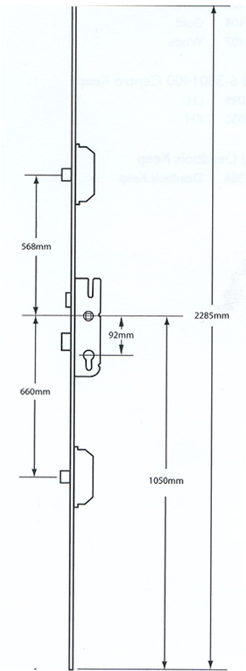 G-U Multi-point locking mechanism: Backset: 35mm Centres: 92mm 2 Deadbolts: Features: Euro Profile Lock Case Latch & Deadbolt 2 x Deadbolts 16mm Faceplate Operation: Locking: Lift Lever handles to lock Unlocking: One full turn of the cylinder and then push down the handles to release the locking mechanisms Please note these Multipoint locks do not come with any strike plates or fixing screws. The strike plates can be ordered but please contact us if required.