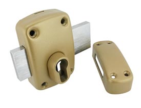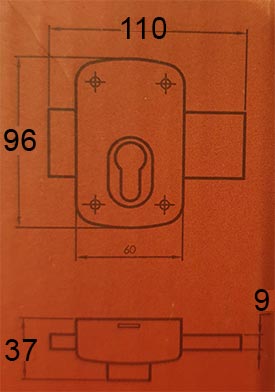 IFAM X5 Euro Rim Lock. This lock is perfect for wooden gates / shed doors. The lock screws directly to the inside of the door and you use a suitable Euro cylinder with this (Euro sold separately) You can use any type of Euro cylinder with these locks. Long bolt throw into the surface mounted keep plate for the frame. Euro Key hole cover supplied in Brass finish for the outside of the door. Colour Option = GOLD Powder Coated BROWN Powder Coated Cylinder measurements = Internal Side = 35mm - External side = Door Thickness + 10mm ( So if your door is 45mm thick you would need to use a = 55/35 cylinder length) Please get in touch if you have any questions on these items. DESCRIPTION Backset: 30mm Width: 60mm Case Height: 95mm Security rim lock Steel body & strike 110mm double throw bolt Uses any standard euro profile cylinder