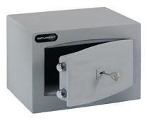 30 minutes fire resistance at 750 degrees (In-house test) £4,000 overnight cash cover (£40,000 valuables) Manufactured in accordance with EN14450 S2 construction 8mm thick door fitted with double bitted safe lock Key storage hook bar on rear of door Suitable for rear or floor fixing - Bolts supplied Colour - Metallic Dark Grey RAL7001