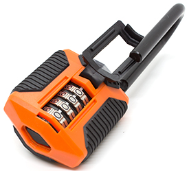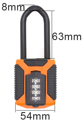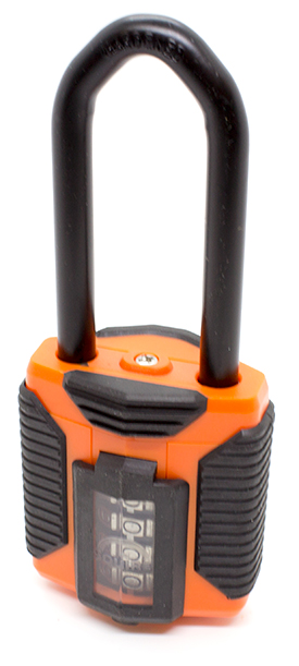 ALL TERRAIN COMBINATION PADLOCK CP50/ATLO - Orange - 63mm long shackle 50mm combination padlock - Bright Coloured cover ideal for high visibility applications and as a visible deterrent. Weather-resistant heavy-duty cover 8mm hardened steel shackle 4 wheel recodable combination with 10000 combinations Easy re-coding functionality Designed and engineered in the UK Anti-pick extra secure mechanism Tested to 312 hours Salt Spray