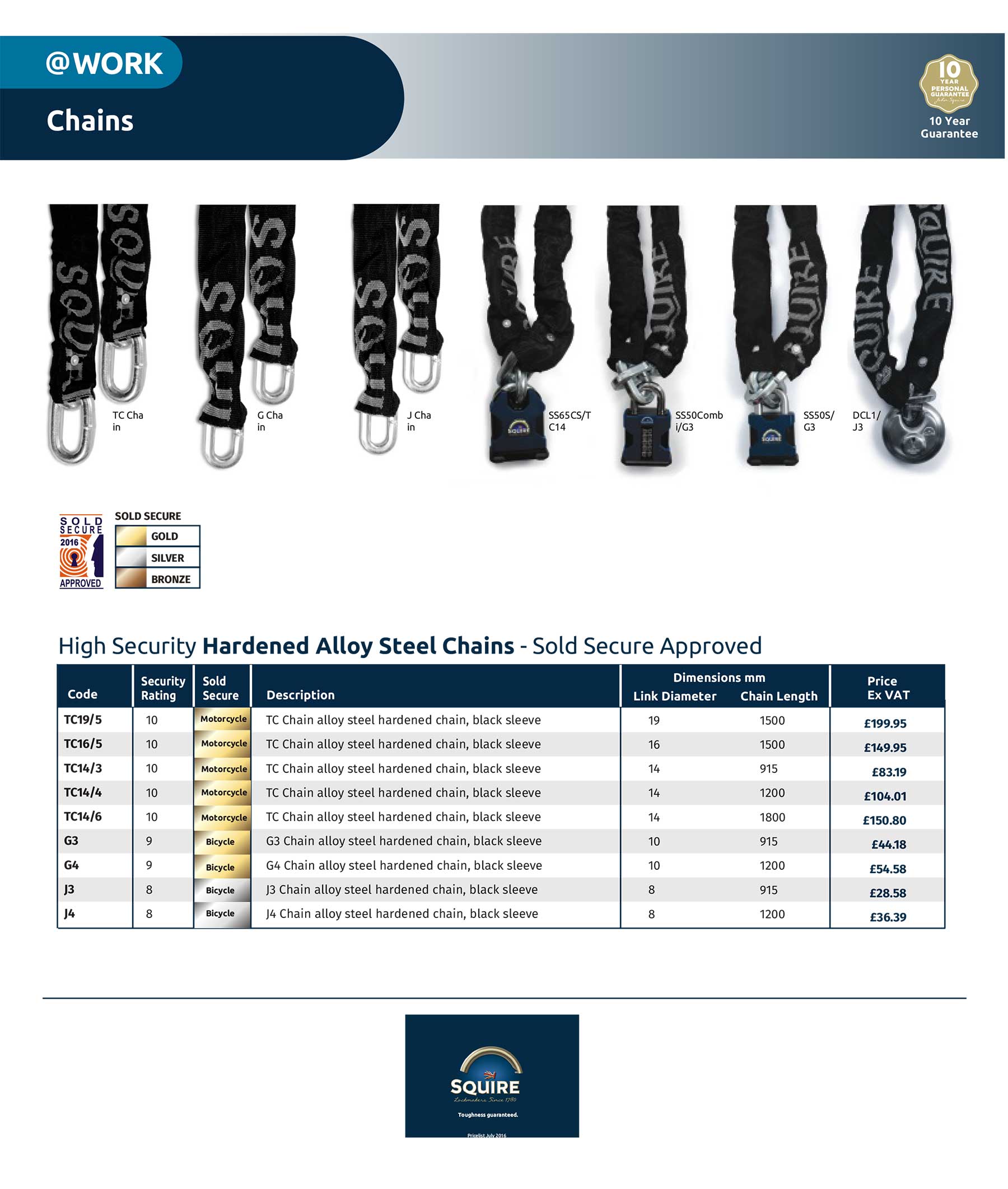 The Squire TC14/4 is Sold Secure Gold rated. This high-security certification ensures the chain has been independently tested and proven to resist a variety of heavy-duty attack methods.