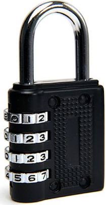 Low cost combination padlock. 4 Wheels with a 40mm black body.