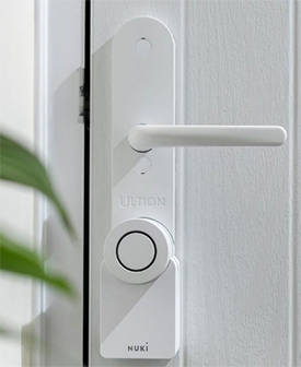 Ultion Nuki Smart Lever Handle has been designed to work with Multipoint door locks on UPVC and Compsite doors. The Ultion Nuki lock comes with fixings at 122mm , 211mm and 215mm to make installation simple. Supplied is the internal handle as shown in the image, you reuse the external handle you have. We can also supply replacement external handles if you would like as well. Please get in touch for this. Fully compatible with a large range of Smart Home products from the start so no need to purchase modules / parts to get the unit to connect. Available in 4 x different Bundles to offer discounted prices for different set ups. Features = Control your door lock form your phone Auto-unlock on approach Send electronic guest keys £2000 security guarantee Use existing fixing holes - no drilling or wiring Fitted and working to UK doors in minutes Supplied with 3 x Ultion WXM 3 Star Euro Cylinder and 3 x keys. Available with different Parts which are listed below = Bridge = The bridge is a unit that needs to be plugged in within bluetooth range (roughly 6 meters) of the door. The Bridge allows the remote set up of codes and users off site. Keypad = With the Bluetooth keypad, you can set 100 different passwords and lock the door by pressing one button. You can even have codes that work only at specific times and on particular days. Key Fob = The bluetooth key fob can be set to unlock your door within 10 metres of the door. You can purchase different Bundles below for additional online discounts. If you have any quesitons on this Smart lock and how it works please feel free to contact us as we will be happy to help.