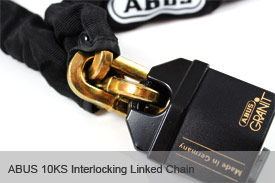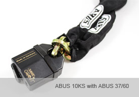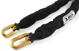 ABUS HIGH SECURITY CHAIN Through hardened, square steel links which are fully galvanised for protection against corrosion. Tested to 7 tonnes cutting force The chain is covered by a widely recognised ABUS protective sleeve. The last link has been extended for convenient padlocking.