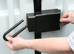 The right choice for securing transportation and storage containers. Supplied with security code card for convenient key security. Simple installation, simple operation. High security ABUS Plus mechanism. Cathodic dip corrosion protected. The ABUS Granit 215/100 + 37RK/70HB100 is approved to CEN grade 5.Integration into KA & MK suites possible. Increased security with special welding technology.Locking nuts and bolts for secure internal fixing. Re-usable. Compact design. On building, industrial and commercial sites throughout the UK there are an estimated 100,000 containers, storing goods and materials to a value of £300 million. Developed over many years, this new lock has several components to secure outward opening doors. The tough steel shroud which encases and protects the whole mechanism is cathodic dipped, corrosion and attack resistant. The long shackle Granit padlock which fits into the shroud is approved to CEN Grade 5. It is incredibly tough and corrosion resistant as well as having the highest security rating in the ABUS range. This ABUS Plus key mechanism can be supplied as part of a master key or keyed alike suite and additional keys can be controlled via the ABUS Plus code cards supplied.