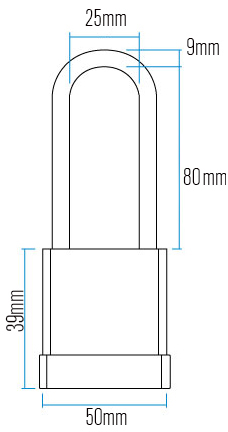 The body is manufactured from solid brass and is sealed with a shock absorbing material designed to protect the cylinder against water and dirt. It features a precision steel tumbler cylinder with a stainless steel shackle. Long shackle offers 80mm vertical clearance Where to use it: Medium security requirement in severe weather and environmental conditions Ideal for securing to vehicles and boats