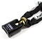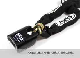 This security chain is made of special through hardened, square link, steel chain for resisting bolt cutter attacks and is fitted with a fabric sleeve to prevent paint work and chrome from damage.