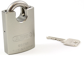 Titalium is ABUS's new improved weather resistant material with is a mix of Aluminium and Titanium. This gives the padlock greater strength and weather resistance. The padlock comes with rust-free internal components for additional protection. The padlock also comes with a closed shackle which offers greater protection against attack. Fully restricted ABUS Pfaffenhain key section, only available from the Lockshop-warehouse so you can control who has keys: Fully Restricted until 2020. This is the highest security key section we offer. Each padlock has anti-drill, anti-pick, and anti bump feature High quality Titalium body & stainless steel shackle: Maximum corrosion resistance !!<