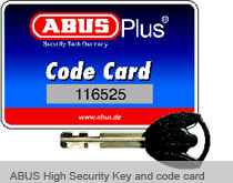 keys supplied are the standard ABUS Plus Key. These are cut to the specific padlock code you purchased.