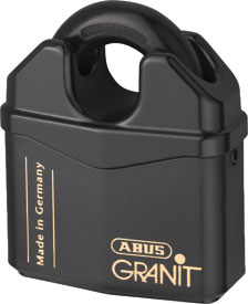 Rekeyable ABUS 37RK series Granit solid steel closed shackle padlock with `ABUS Plus` disk anti-pick cylinder providing 250,000 possible key differs. This closed shackle padlock has a through hardened steel alloy body and removable shackle. Supplied complete with 2 keys and a code card.