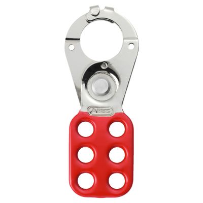 A larger version of the ABUS lockout hasp, featuring pry-resistant interlocking jaws for enhanced security. It accommodates up to six padlocks, allowing six individuals to independently lock the energy source and prevent unauthorized reconnection.