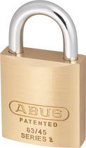 83/45 Padlock: Brass Body with Hardened Steel Shackle: Each padlock has anti-drill, anti-pick, and anti bump feature This entry level 83 series lock is perfect for internal and external use. Designed for use for low-medium security requirements. The hardened steel shackle resists cutting and this padlock is available keyed alike or masterkeyed to any other padlock in the ABUS 83 series.