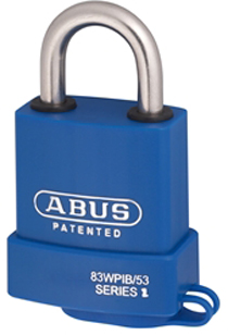 The body is covered in high impact plastic with shackle seals and keyway cover cap to offer total water protection. The body of the padlock has vinyl protection over a chrome plated brass body for maximum weatherproofing. The shackle is stainless steel which offers absolute protection against any elements. The 83WPIB/53 is available keyed alike or masterkeyed to any other padlock in the ABUS 83 series.
