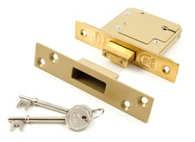This Asec deadlock is suitable for use on external doors as it's BS3621 : 2007 compliant, insurance approved and police approved. Designed with a steel case with an anti-drill plate on both the cap and the case. The lock comes with a 10 year guarantee and escutcheons are included. Mechanism : 5 Lever Security Level: British Standard - BS3621:2007 Case Size: 64mm or 76mm Case Finish: Gold (hmmm, in colour anyway) Foreend Finish : Polished Brass or Stainless Steel Keys Supplied : 2 Differs: 1000