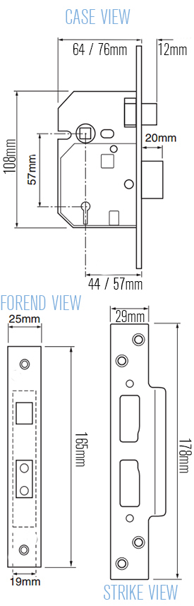 There are 2 different sizes of lock cases as each lock will give you a different backset. This is the distance from the edge of the lock to the keyhole / spindle for handles. The bigger locks are better for solid wooden doors as they move the keyhole away from the door stop further. If you have a large door stop and fit a 64mm lock case you can find that you hit your knuckles on the door stop when you turn the key. Alternatively the 64mm lock case is better when you have a glass panelled door as you may not have enough wood on the stile to fit the 76mm lock into before you hit and therefore smash the glass. This is very important to check when installing locks to doors with glass in.