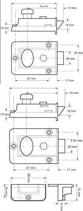 Latchbolt is withdrawn by handle from inside and key outside. Springbolt may be held back and also deadlocked by snib, rendering the lock inoperable by key or knob. Mechanism : 6 Pin Cylinder Cylinder Finish : PB,SC Case Finish : Grey Keys Supplied : 3 Door Thickness : 32mm - 57mm