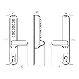 This model includes a 325mm-long extension plate, pre-installed behind both the keypad and internal handle. This plate adds 113mm to the total length, making the BL6100 fully compatible with 90mm and 92mm-centred multi-point locks, while also helping to cover existing holes in retrofit installations.