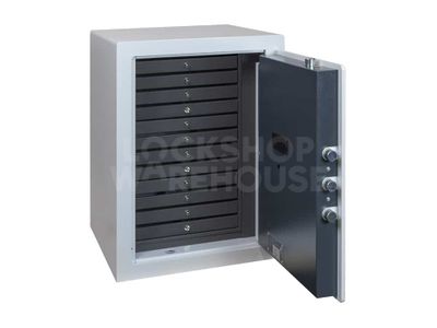 The Burton Ares S2 Design Safe (Size 1) combines high-end security with elegant organization. Designed specifically for luxury items, this safe is independently tested and certified to EN14450 S2 by ECBS, providing a £4,000 cash rating or up to £40,000 for valuables such as jewellery and watches.