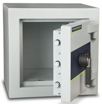 Tested and certified by ECBS to EN1143-1 Grade 1 Association of Insurance Surveyors approved (AIS) UK Police approved under the Secured by Design scheme Lighter weight construction for easier installation 10mm thick laser cut, solid steel door Double walled steel body, filled with special security composite Three way locking bolts Special drill protection of the lock and boltwork Relocking device secures door in case of attack Quality machined parts ensure a high level of finish and extend product longevity High security key lock as standard Option of mechanical combination, electronic or biometric locks Option of dual locking (Not for Sizes 1 & 2) Height adjustable shelving Back and base fixing