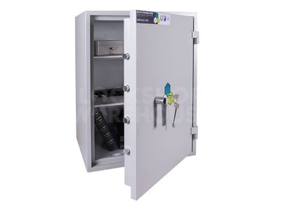 Beyond its physical security, this safe offers 30 minutes of fire protection for paper documents, certified to EN15659 LFS 30P. The door is secured by a 3-point locking mechanism and 23mm diameter locking bolts, operated by a high-security VdS Class 1 double bitted key lock.