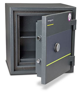 FireSec 4/60 Fire Safes available in a range of sizes all with £4,000 Cash Cover and an FD60 (60mins) Fire Rating. One of the most stringently tested home safes on the market with both a high level of fire protection and security. Ideal for use in both homes and commercial settings, manufactured from exceptionally machined parts for a superior finish with anti-rust treatment.