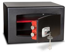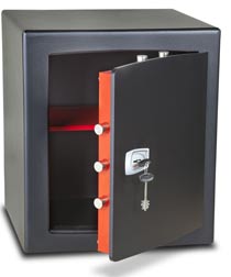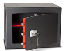 Independently attack tested and certified to EN 14450 S2 by ICIM Solid, extra heavy duty door and body The best build quality and security level in its class 5 year warranty Smart metallic black paint finish Flush fitting door and keypad make this safe ideal for use in bedroom cupboards High security key lock or electronic lock option Electronic locking option including flush keypad, emergency override key and external battery power point in case of lock out Removable shelf Back and base fixing
