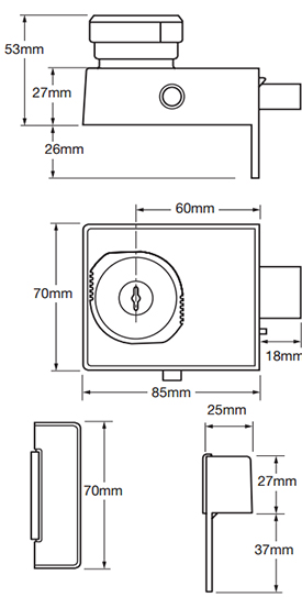 Tested and certified to BS3621: 2007 the Union 4L67 has a backset of 60mm and is designed for use on inward opening doors. Incorporating a slam action square hardened steel bolt which automatically deadlocks. Kitemarked to BS3621. Recommended by Insurance companies and the police. For timber doors from 38 to 57mm thick, hinged on the left or right and opening inwards only. Suitable for glass panelled doors only Operation: Automatic internal and external deadlocking Key operation from the outside. Key lockable knob operation from the inside Specification: Reference 4L67E Backset 60mm Cylinder 10 disc Ava mechanism Keys supplied 3 keys Hardened steel 20mm deadbolt which automatically deadlocks on closing the door High security cylinder hardened steel plates and pins protect from drill attack resists torque attack high level of protection against picking and manipulation Drill resistant Saw resistant Force resistant This is the old Chubb 4L67E lock. The Chubb brand has been replaced with Union. The lock is manufactured in the same way as the old Chubb but has the Union brand on instead.