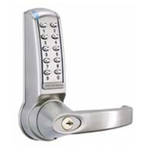 The CL4010 is a medium duty electronic keyless lock offering all the functions of the CL2010, but with the benefit of full size lever handles which allow it to be used as the primary lock on doors where a knob operated lock would not be suitable. Over 200,000 operation from 4xAA cells. PVD, weather resistant, low maintenance finish. OPERATION Outside lever turns freely without operating the latchbolt. When valid code is entered and blue light burns, the lever will retract the latchbolt. When the door closes the spring latch will automatically lock the door.