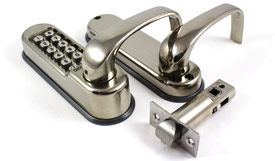 Full size lever handles . Deadbolt to lock out code users Code free entry in latching mode . Panic/Safety function - inside lever handle overrides deadbolt and latch 2047 codes to choose from . Available in stainless steel finish The model 510/515 has a tubular, deadlocking, mortice latch and may be used as a new installation on a door, or where an existing latch is to be replaced. PLEASE NOTE. Brass finish is on special order and delivery may be extended by couple of days.