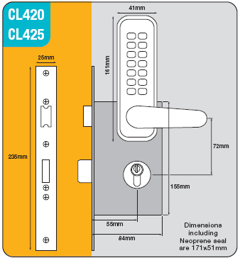 The CL425 is part of the CL400 series and is a medium duty mortice lock with double cylinder, 3 keys, code free option and anti-panic safety feature. The outside lever handle will retract the latch after a correct code is entered. The spring loaded latchbolt will lock automatically when the door is closed. The key retracts the latchbolt for entry without using a code. The key controls the deadbolt position. When the deadbolt is projected it denies access by code. When the deadbolt is projected the safety feature allows the inside lever handle to retract the deadbolt and the latchbolt, preventing people being accidentally locked in. The key can be used to open doors for management functions such as security and cleaning. Clean by Codelocks is an optional finish available to special order on many Codelock products. The clear coating combats SARS-CoV-2 coronavirus (COVID-19) and can reduce bacterial growth by 99.96%*, providing an additional measure of protection over sanitisation. Clean by Codelocks features an ISO certified photocatalytic coating which offers enhanced protection against viruses, bacteria, germs and other environmental toxins. For full details please view the data sheet in the associated documents or to order please contact our Specials Department.