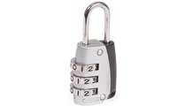 Small combination padlock with 3 wheel code, well suited to luggage and sports equipment
