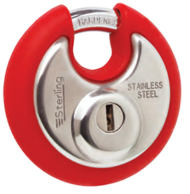 Disc Padlock with Plastic Bumper Soft Protective Bumper Suppied in assorted colours Red and Black