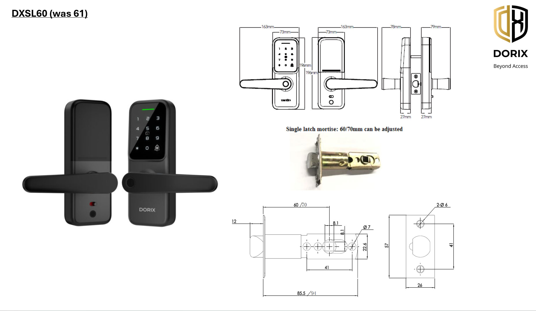 The DORIX DXSL60 is your all-in-one smart locking solution for bedrooms, offices, and internal doors. Built from durable aluminium alloy with a toughened glass front panel, it offers strong security and elegant design in a slim, modern profile.