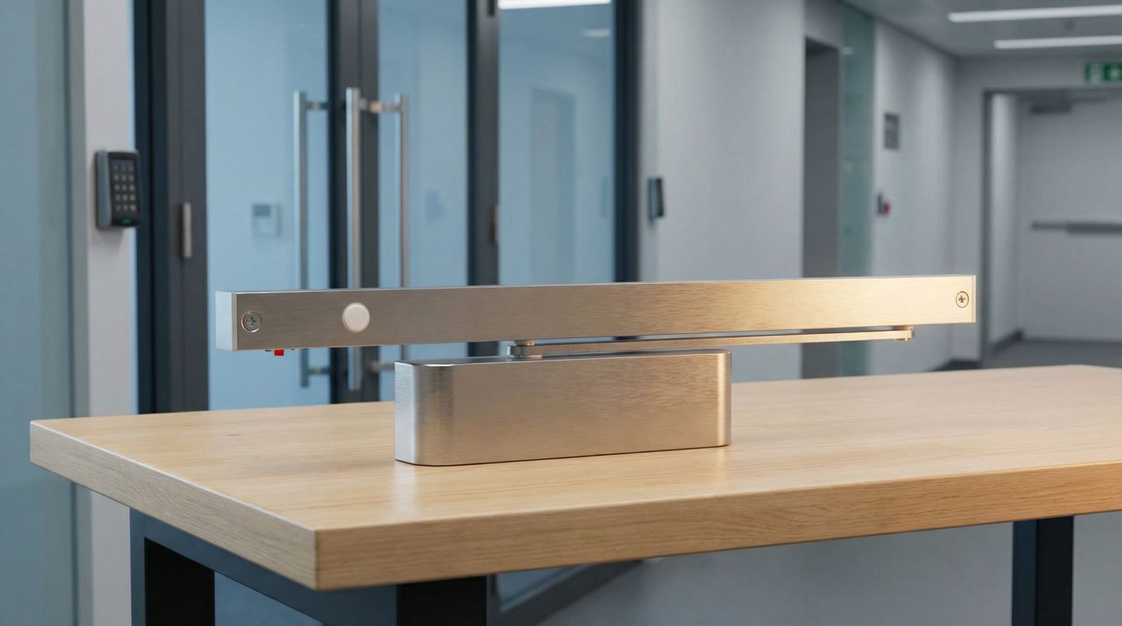 A premium electromagnetic slide arm door closer featuring cam action for easy access and automatic closing functionality during fire emergencies.