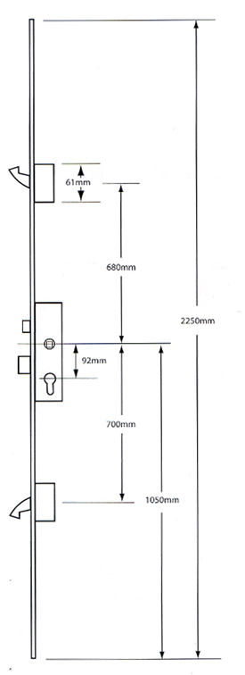 Operation: Locking: Lift Lever to engage locking mechanisms and then one full turn of the cylinder to lock. Unlocking: One full turn of the cylinder and then push down the handles to release the locking mechanisms