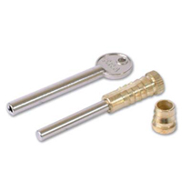 Barrels are driven into both inner and outer frames and the key operated bolt screws into barrel and frame. Engaged and released by use of the key. Suitable for sliding sash windows.