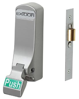 The Exidor 306 offers a push pad actuator unit with a cylinder mortice night latch case that can be supplied with or without a Euro profile cylinder for access from the outside. A mortice plate is supplied as standard. The unit provides security on the outside with ease of escape from the inside in emergency situations. Non-handed Surface mounted This unit can be used with any 1/2 Euro Cylinder (not supplied)