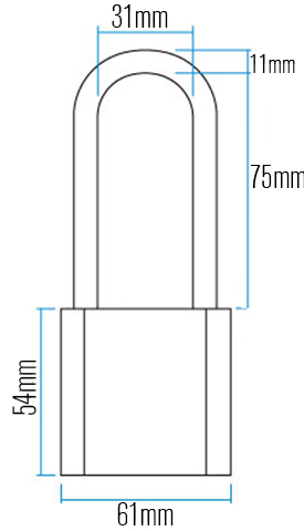 Dimensions Image: Federal 733 Padlock - 75mm Long Shackle