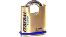 Brass Padlocks from Federal. Large range of brass bodied padlocks. Open and closed shackle versions available, keyed differ or keyed alike. Suitable for internal uses.