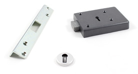 Deadbolt is locked or unlocked by key from either side. Supplied with 182mm extended strike plate and one escutcheon. Not reversible (Right Hand Shown in Picture). Hand must be stated when ordering. Mechanism : 2 Lever Warded Case Finish : Hammered Silver Case Size : 110mm Please note: This lock is supplied without keys which are sold seperat