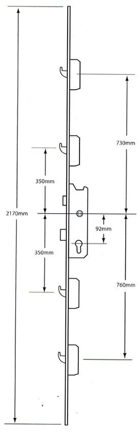 It is operated with a lever/lever action so when the door is unlocked by the cylinder, depress the lever to release all locking points. On closing, lift the lever to engage the main locking points then turn the key in the profile cylinder to throw the central deadbolt and to deadlock all other locking points. The latch and deadbolt are reversible.