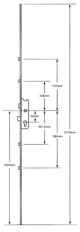 FUHR Multi-point locking mechanism: Backset: 25mm or 30mm or 35mm or 45mm Centres: 92mm Features: