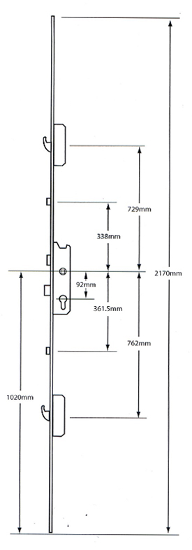 FUHR Multi-point locking mechanism: Backset: 35mm Centres: 92mm 2 Hooks and 2 Rollers: Features: Euro Profile Lock Case Latch & Deadbolt 2 x Deadbolts 2 x Rollers 16mm Faceplate Operation: Locking: Lift Lever to engage locking mechanisms and then one full turn of the cylinder to lock. Unlocking: One full turn of the cylinder and then push down the handles to release the locking mechanisms Please note these Multipoint locks do not come with any strike plates or fixing screws. The strike plates can be ordered but please contact us if required.