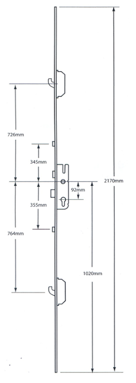 G-U Multi-point locking mechanism: Backset: 35mm Centres: 92mm 2 Hooks and 2 Rollers: Features: Euro Profile Lock Case Latch & Deadbolt 2 x Hooks 2 x Rollers 16mm Faceplate Operation: Locking: Lift Lever to engage locking mechanisms and then one full turn of the cylinder to lock. Unlocking: One full turn of the cylinder and then push down the handles to release the locking mechanisms Please note these Multipoint locks do not come with any strike plates or fixing screws. The strike plates can be ordered but please contact us if required.