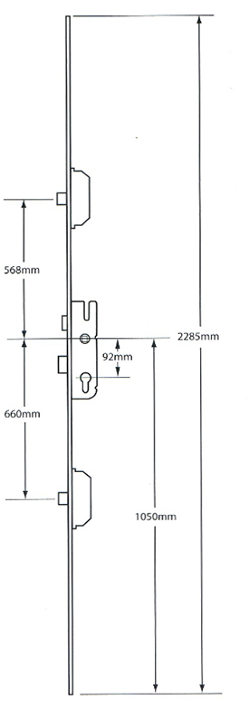G-U Multi-point locking mechanism: Backset: 28mm or 35mm Centres: 92mm 2 Deadbolts: Features: Euro Profile Lock Case Latch & Deadbolt 2 x Deadbolts 16mm Faceplate Operation: Locking: Lift Lever to engage locking mechanisms and then one full turn of the cylinder to lock. Unlocking: One full turn of the cylinder and then push down the handles to release the locking mechanisms Please note these Multipoint locks do not come with any strike plates or fixing screws. The strike plates can be ordered but please contact us if required.